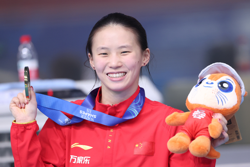 寰球泳联17日公布,中国女子跳台名将陈芋汐荣膺2025年度寰球最好女子跳水通顺员。图为2025年7月31日,新加坡2025游水世锦赛跳水女子10米跳台冠军中国选手陈芋汐在授奖典礼后。| 新华社发 雒圆 摄
