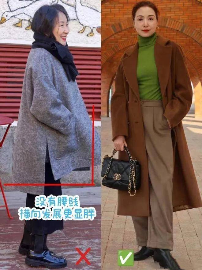 ③大衣一定要有腰线:莫得腰线的大衣会让你看起来横向发展,暧昧又显胖。而带高腰收腰贪图、长度盖过膝盖到小腿肚的大衣,不仅能拉长躯壳比例,还能提高合座气质。